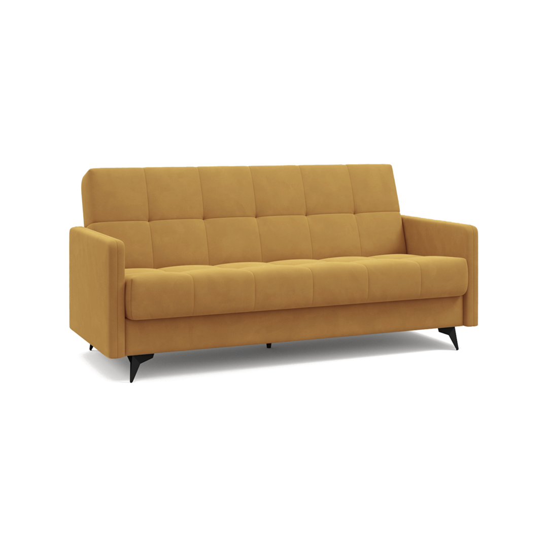Компактный и функциональный диван для любого стиля интерьера.  Правильная геометрическая стежка гармонизирует пространство, а высокие ножки из металла придают интерьеру легкость и позволяют проводить сухую и влажную уборку. Стежка чехла на особом упругом нетканном материале skyfiber обеспечивает особую мягкость и комфорт.