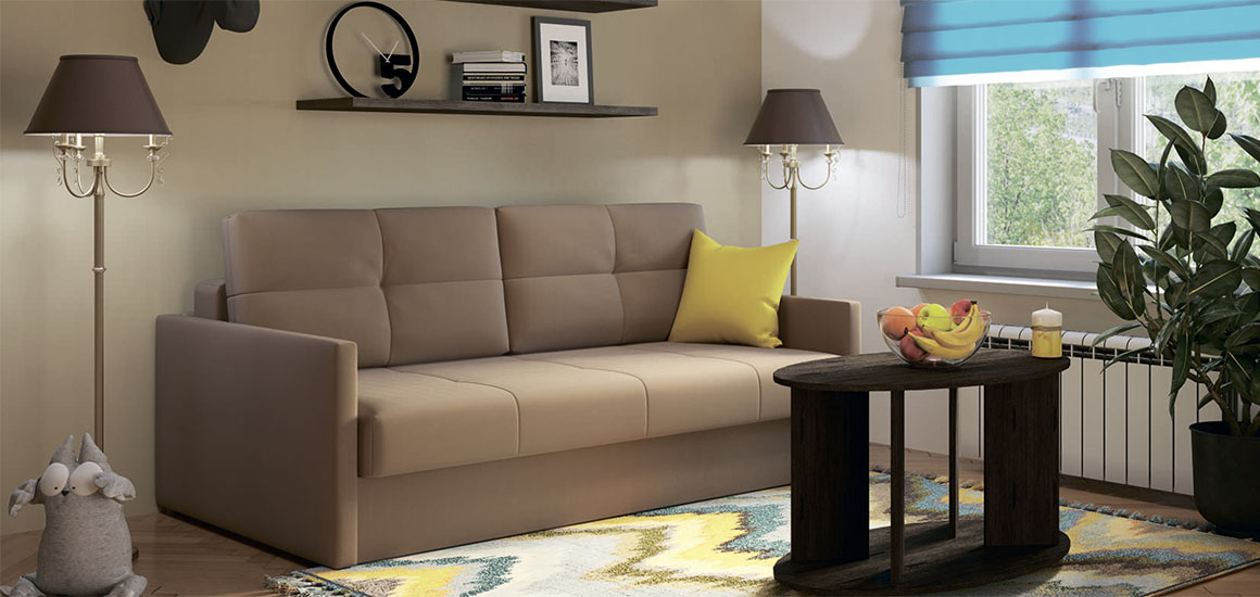 Уникальный и практичный диван-кровать Мадрид легко раскладывается и не портит напольное покрытие благодаря шагающему механизму, не требующего физической силы и сложных манипуляций при трансформации. Идеальный внешний вид без складок и морщин обеспечивает специальная декоративная стёжка и утяжки. Съемные чехлы всех элементов дивана позволяют сменить дизайн при необходимости.